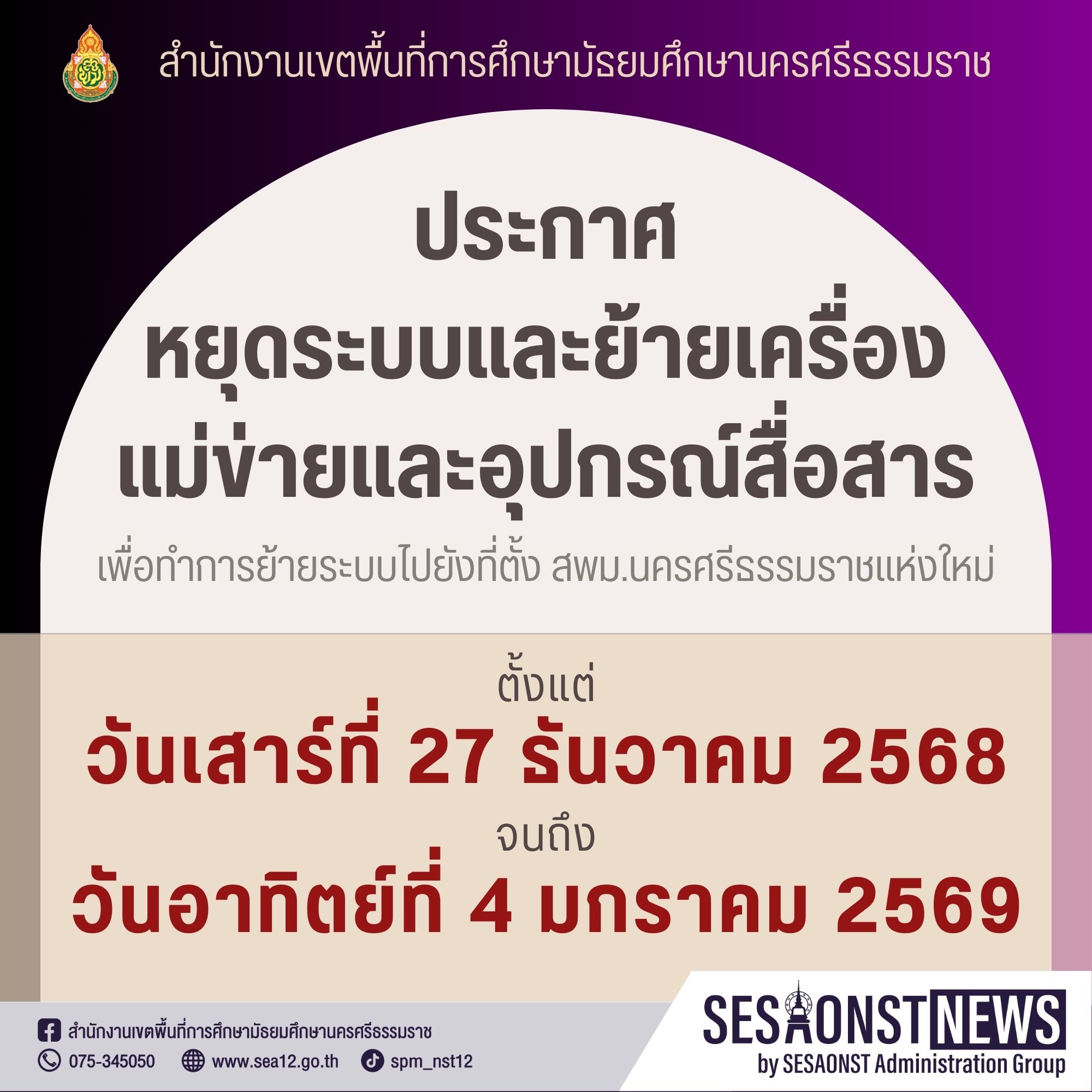 ประกาศหยุดระบบและย้ายเครื่องแม่ข่ายและอุปกรณ์สื่อสาร