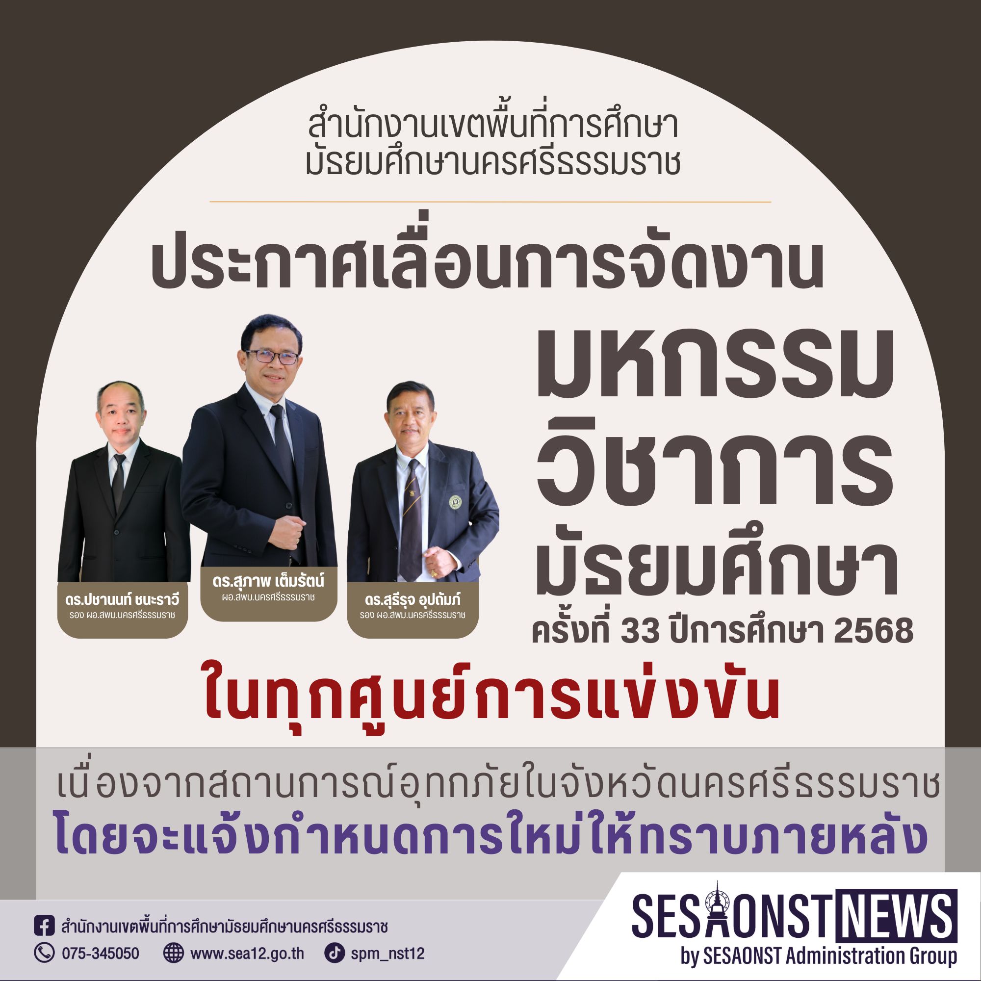 วันที่ 30 สิงหาคม 2563 นายสมบูรณ์ เรืองแก้ว ผู้อำนวยการสำนักงานเขตพื้นที่การศึกษามัธยมศึกษา เขต 12 ตรวจเยี่ยมสนามสอบแข่งขันเพื่อบรรจุและแต่งตั้งบุคคลเข้ารับราชการเป็นข้าราชการครูและบุคลากรทางการศึกษา ตำแหน่งครูผู้ช่วย สำนักสำนักงานคณะกรรมการการศึกษาขั้นพื้นฐานปี พ.ศ.2563 ณ โรงเรียนเตรียมอุดมศึกษาภาคใต้